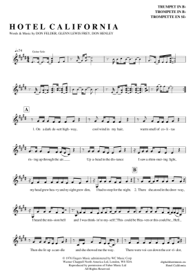 Hotel California - Noten für Trompete in B Eagles