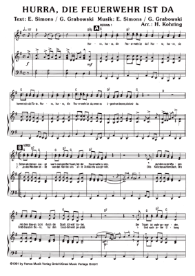 Hurra, die Feuerwehr ist da - Noten für Klavier und Gesang Die Wildecker Herzbuben
