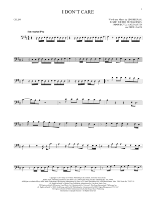 I Don't Care - Noten für Violoncello Ed Sheeran & Justin Bieber