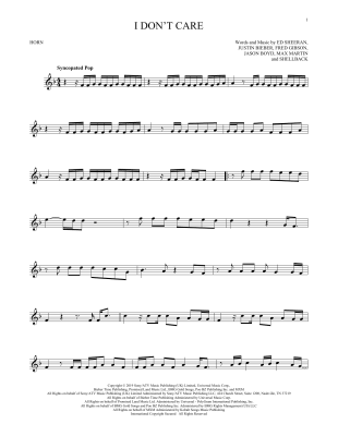 I Don't Care - Noten für Horn Ed Sheeran & Justin Bieber