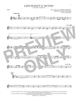 I Got Plenty O' Nuttin' - Noten für Horn George Gershwin