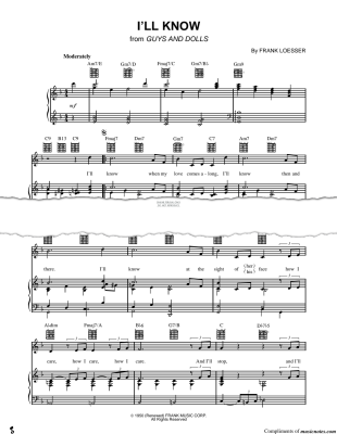 I'll Know (from 'Guys and Dolls') - Noten für Gesang, Gitarre, Klavier Frank Loesser