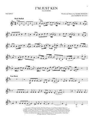 I'm Just Ken (from Barbie) - Noten für Trompete Ryan Gosling