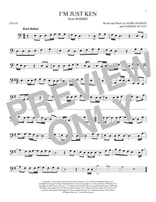 I'm Just Ken (from Barbie) - Noten für Violoncello Ryan Gosling