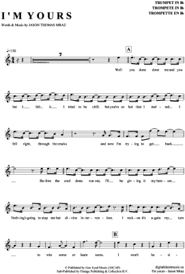 I´m yours - Noten für Trompete in B Jason Mraz