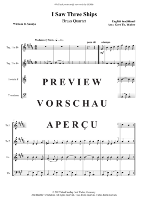 I Saw Three Ships - Noten für Blechbläserquartett Traditional
