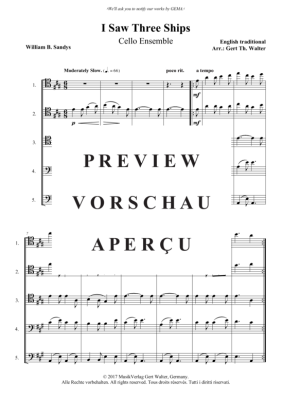 I Saw Three Ships - Noten für Violoncello Quintett Traditional