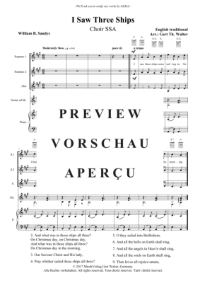 I Saw Three Ships - Noten für Frauenchor SSA + Klavier Traditional