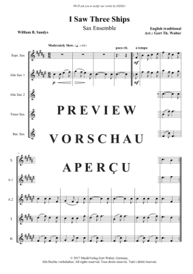 I Saw Three Ships - Noten für Saxophon Quintett SAATB Traditional