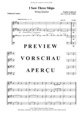 I Saw Three Ships - Noten für Streicherquartett Traditional