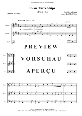 I Saw Three Ships - Noten für 2x Violine + Cello Traditional