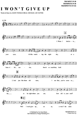 I won´t give up - Noten für Trompete in B Jason Mraz