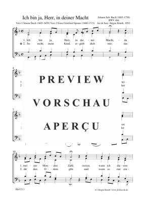 Ich bin ja, Herr, in deiner Macht BWV 464 - Noten für Gemischter Chor Johann Seb. Bach