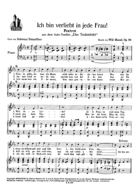 Ich bin verliebt in jede Frau - Noten für Klavier und Gesang aus: Das Tankmädel (Film)