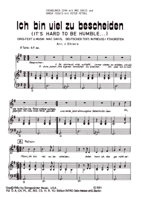 Ich bin viel zu bescheiden - Noten für Klavier und Gesang Peter Petrel