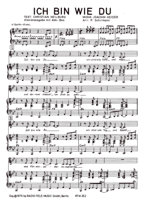 Ich bin wie du - Noten für Klavier und Gesang Marianne Rosenberg