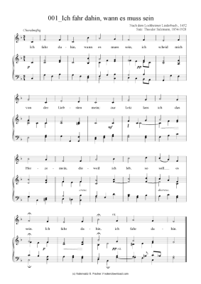 Ich fahr dahin, wann es muss sein - Noten für Klavier und Gesang Nach dem Lochheimer Liederbuch , 1452