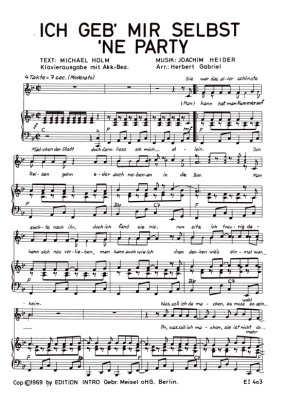 Ich geb mir selbst ne Party - Noten für Klavier und Gesang Howard Carpendale