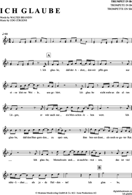 Ich glaube - Noten für Trompete in B Udo Jürgens