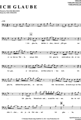 Ich glaube - Noten für Violon-Cello Udo Jürgens
