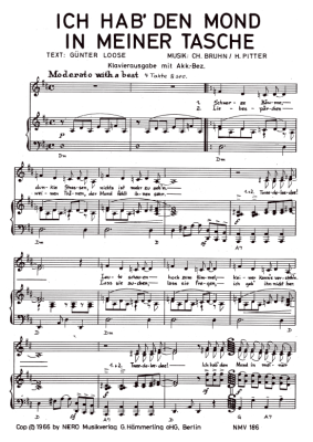 Ich hab den Mond in meiner Tasche - Noten für Klavier und Gesang Drafi Deutscher