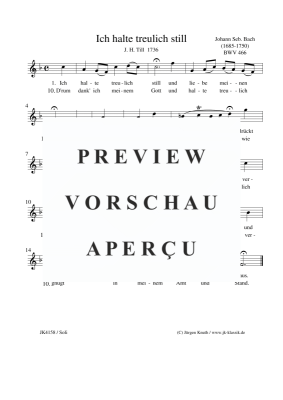 Ich halte treulich still BWV 466 - Noten für Gesang und Klavier Johann Seb. Bach