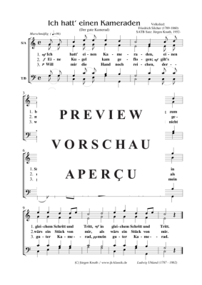 Ich hatt´ einen Kameraden (Der gute Kamerad) - Noten für 3. Ausgabe Gemischter Chor unbekannt / Satz: Fr. Silcher, 1789-1860
