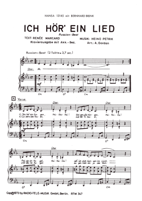 Ich hör ein Lied - Noten für Klavier und Gesang Bernhard Brink