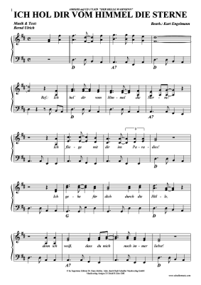 Ich hol dir vom Himmel die Sterne - Noten für Klavier und Gesang Amigos