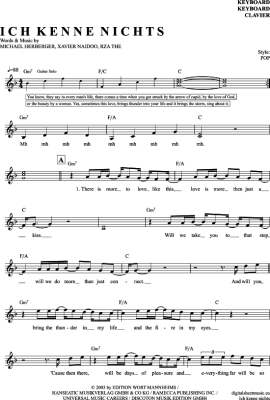 Ich Kenne Nichts (Das So Schön Ist Wie Du) - Noten für Keyboard Xavier Naidoo
