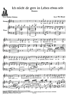 Ich möcht dir gern im Leben etwas sein - Noten für Klavier und Gesang Chanson
