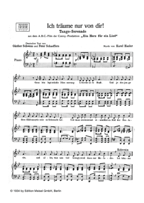 Ich träume nur von Dir! - Noten für Klavier und Gesang aus: Ein Herz für ein Lied