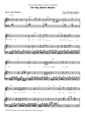 Ich trag deinen Namen - Noten für Klavier und Gesang Freya und Bernd Wippich (Grand Prix Eurovision Vorentscheid 1978)