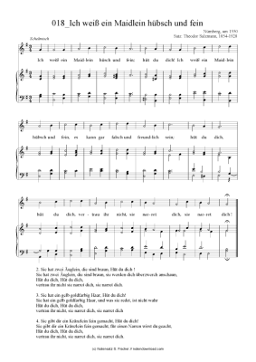 Ich weiß ein Maidlein hübsch und fein - Noten für Klavier und Gesang Nürnberg, um 1550