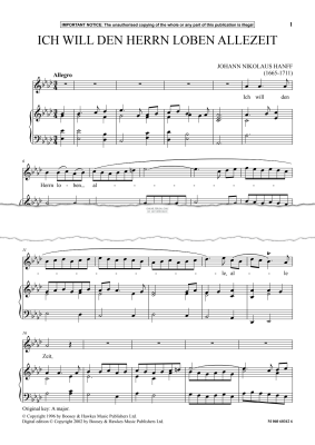 Ich Will Den Herrn Loben Allezeit - Noten für Gesang, Klavier Johann Nikolaus Hanff