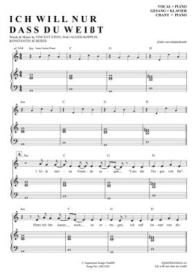 Ich will nur dass du weißt - Noten für Gesang mit Klavierbegleitung SDP