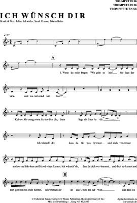 Ich Wünsch Dir - Noten für Trompete in B Sarah Connor