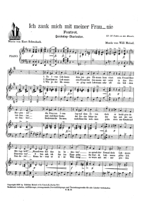 Ich zank mich mit meiner Frau - nie - Noten für Klavier und Gesang Quickstep