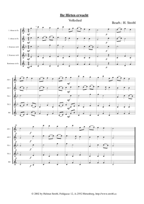 Ihr Hirten erwacht - Noten für Saxophonquintett AATTB Traditional