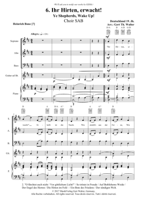 Ihr Hirten, erwacht - Noten für Gemischter Chor SAB, Gitarre + Klavier Traditional