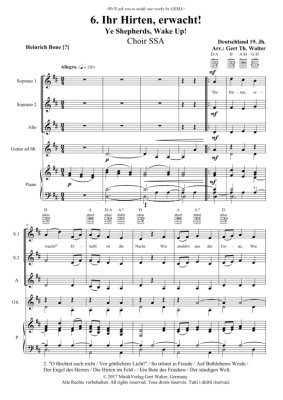 Ihr Hirten, erwacht - Noten für Frauenchor, Gitarre + Klavier Traditional