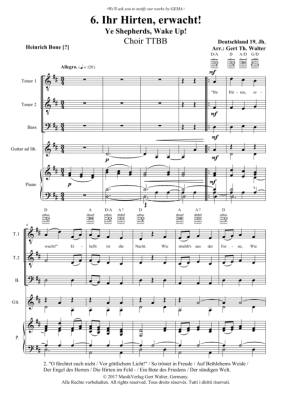Ihr Hirten, erwacht - Noten für Männerchor, Gitarre + Klavier Traditional