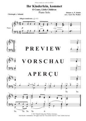 Ihr Kinderlein, kommet - Noten für Klavier Solo Johann A. P. Schulz