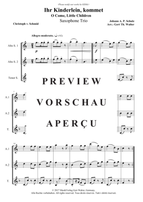Ihr Kinderlein, kommet - Noten für Saxophon Trio Johann A. P. Schulz