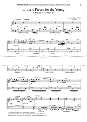 II Prayer of the Matador from Lyric Pieces for the Young - Noten für Klavier Norman Dello Joio