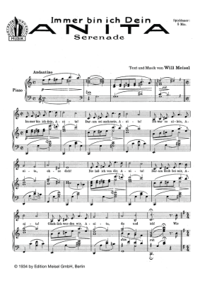 Immer bin ich Dein Anita - Noten für Klavier und Gesang Serenade