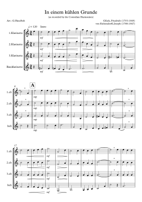 In einem kühlen Grunde - Noten für Klarinettenquartett Glück, Friedrich (1793-1849), von Eichendorff, Joseph (1788-1847)