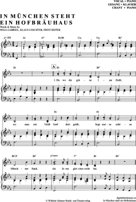 In München Steht Ein Hofbräuhaus - Noten für Klavier und Gesang Marianne Und Michael
