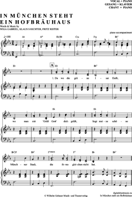 In München Steht Ein Hofbräuhaus - Noten für Gesang mit Klavierbegleitung Marianne Und Michael