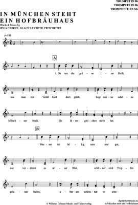 In München Steht Ein Hofbräuhaus - Noten für Trompete in B Marianne Und Michael